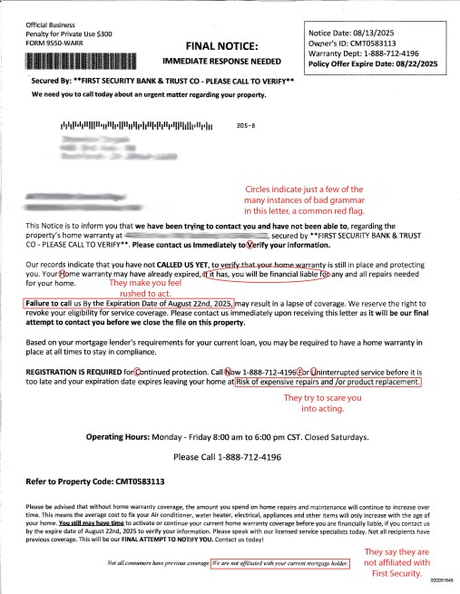 If you’re like most people, you’ve probably received multiple postcards and letters in the mail over the years regarding extending your home or car warranty. Most of the time, you consider it spam and toss it along with the rest of your junk mail. However, sometimes these postcards list your financial institution, maybe even First Security as an affiliated company. They make you pause and wonder if it’s legitimate. Hopefully at that point you call your bank to ask some questions. You will likely learn these extended warranty offers are not affiliated with your bank.
